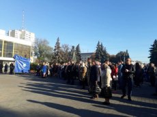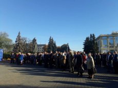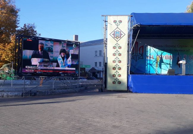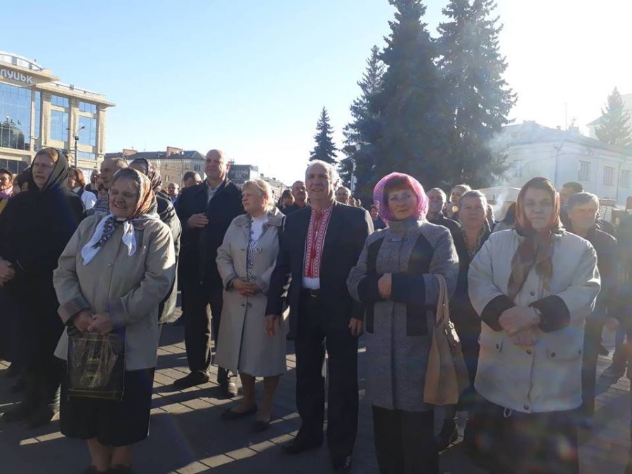 Лучани зібралися Театральному майдані, аби заслухати виступ президента Петра Порошенка та привітати один одного зі святом Покрови та здобуттям автокефальної церкви.