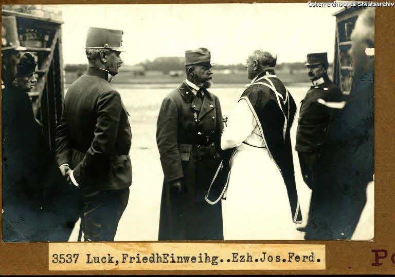 Представлені кадри були зроблені під час візиту до Луцька австрійського ерцгерцога, воєначальника, генерала-полковника Йосипа Фердинанда Тосканського (1872-1942). Народився він в сім’ї герцога Тосканського Фердинанда IV. Йосип Фердинанд був спадкоємцем, а потім і главою тосканської гілки Габсбургів. ВолиньРost згадував на своїх сторінках про постать князя в публікації «Австрійський князь на раритетних фото у Гаразджі. ФОТО». Саме Йосип Фердинанд є ключовою постаттю на фото з меморіалу.