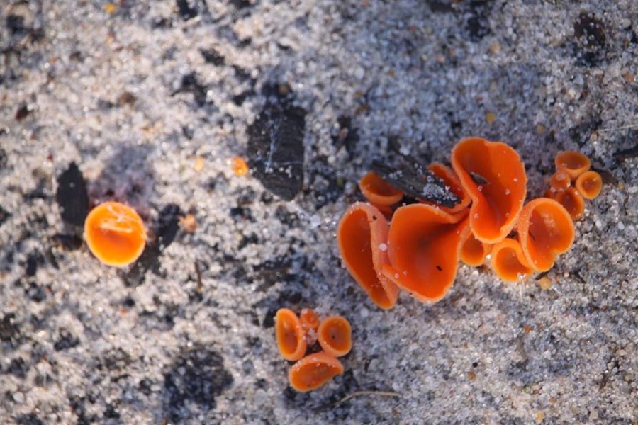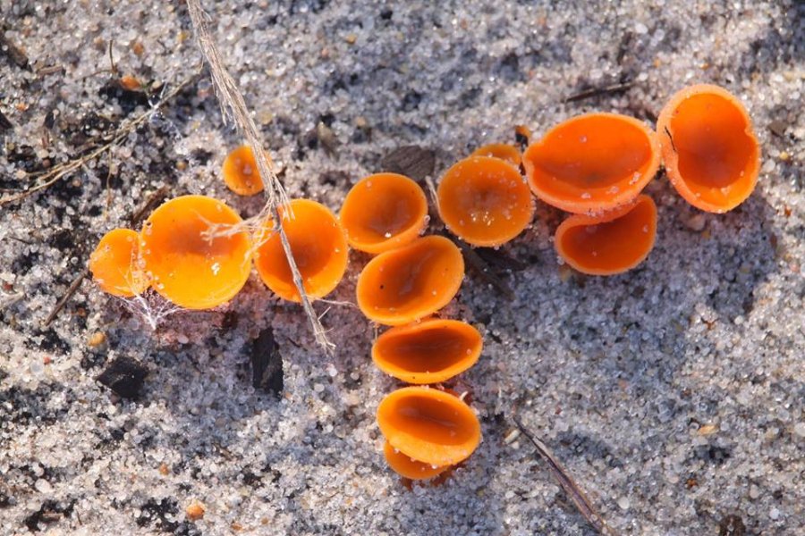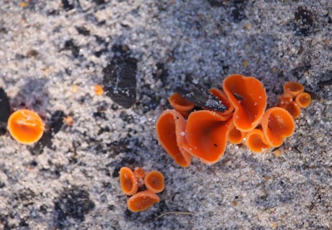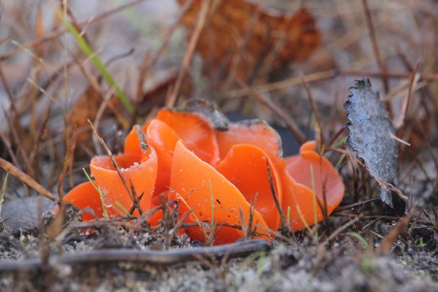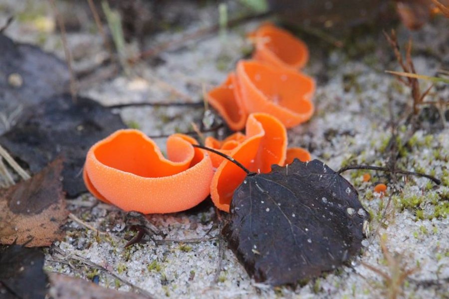 "Алеурія аурантіа (Aleuria aurantia). Трапились мені такі незвичайні грибочки, цікаво те, що вони вважаються їстівними і їх можна вживати у сирому вигляді для прикраси салатів або як десерт. Ківерцівський район, 15.10.18", - йдеться у дописі.