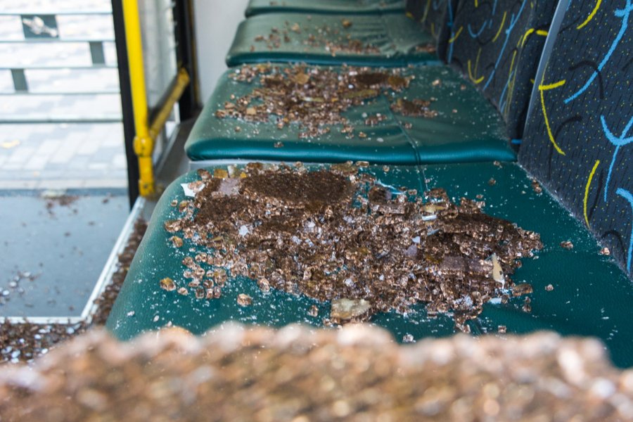 Госпіталізували дівчину-пасажира тролейбуса з множинними ушкодженнями від розбитого скла, яке висипалося прямо на неї.