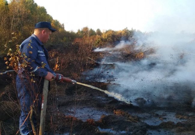 На гасіння масштабної пожежі на торфовищі залучили спецтехніку з Луцька