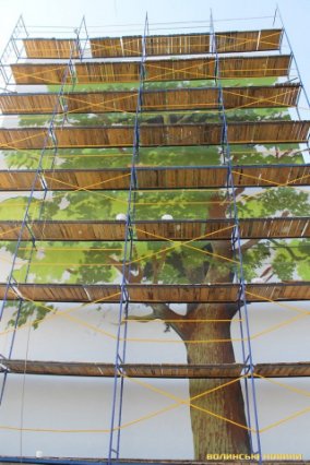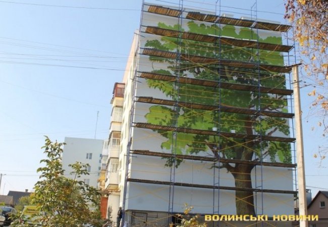На багатоповерхівці, що по вулиці Вороніхіна, 23а у Луцьку, з'явився величезний малюнок дерева.