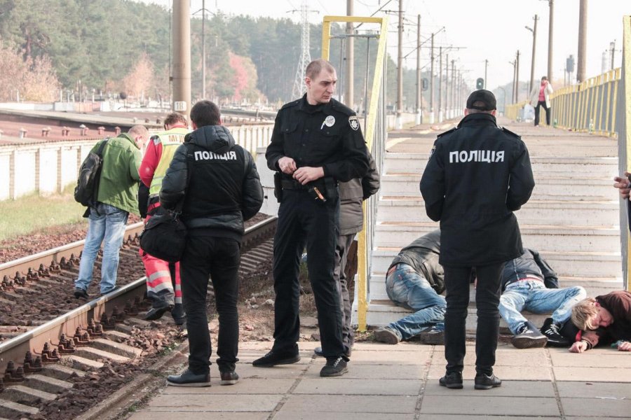 У цей момент у бік центрального залізничного вокзалу їхав швидкісний потяг "Інтерсіті+" №725 сполученням Харків — Київ. Машиніст складу побачив людей і почав екстрено гальмувати і подавати звуковий сигнал.