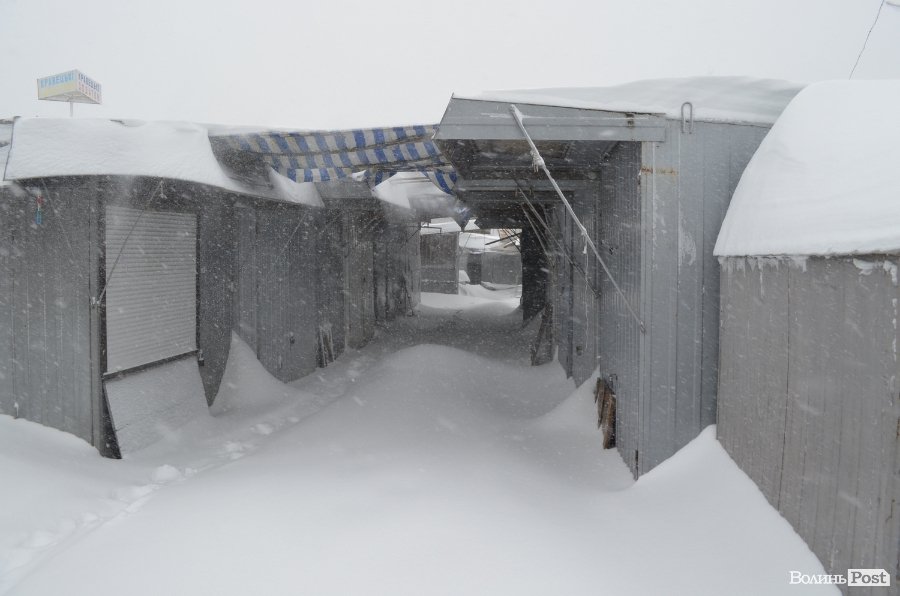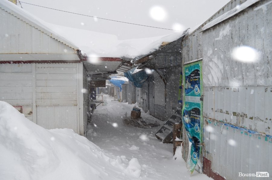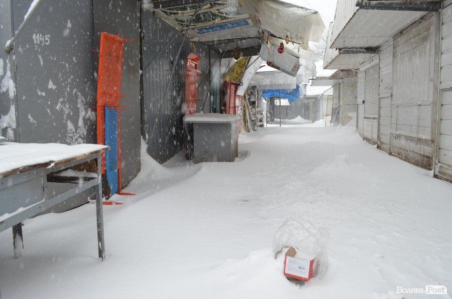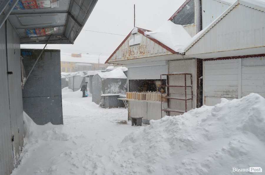 Варто відзначити, що нині Центральний та Завокзальний ринки Луцька фактично не працюють. Майже всі продавці завершили роботу ще до обіду через снігопад, який з перервами засипає обласний центр понад добу. А багато торговців навіть не прийшли на роботу. На 14:40 на Центральному ринку залишилося кілька продавців у контейнерах та закритих павільйонах.