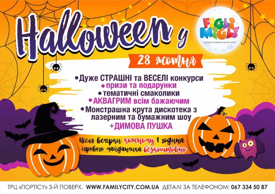 «Halloween» у ДРЦ «Figli Migli», що у ТРЦ «ПортCity» подарує Вашій дитині найяскравіші враження! Обирайте найкраще для свого малюка! Обирайте ТРЦ «ПортCity»!