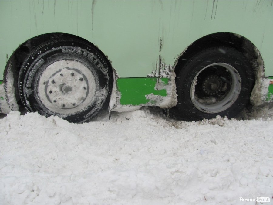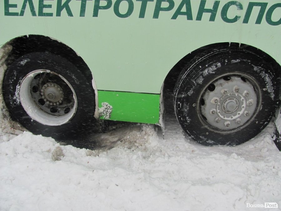 Тролейбус, який рухався за маршрутом № 2, їхав до депо, але застряг в снігу на майдані Братський Міст.