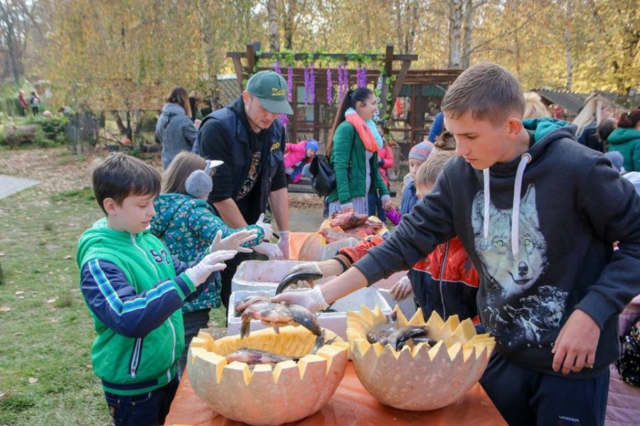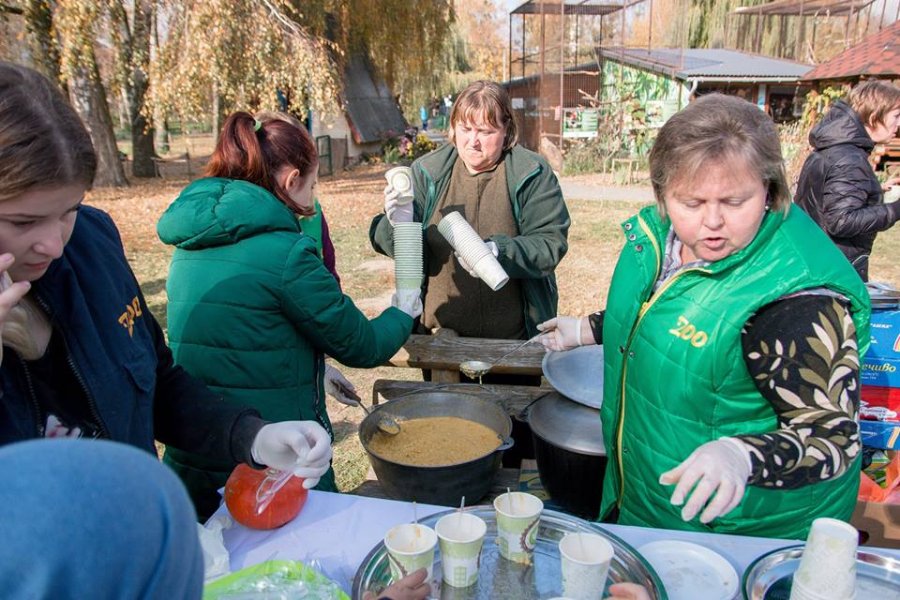 Декорування і фотозони зоопарку «під свято» зробили співробітники, адміністрація на день із бухгалтерів-екскурсоводів перевтілилася у майстер-шефів гарбузових страв від соку до каші.