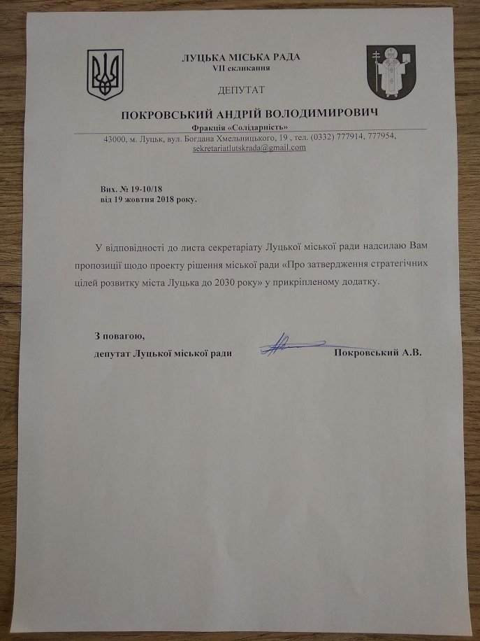 Також Андрій Покровський спільно із Громадянським Рухом "СВІДОМІ" закликає детально вивчити досвід стратегічного планування декількох європейських міст, у тому числі міст-партнерів Луцька, взяти з їхніх стратегій та їхньої реалізації те, від чого реально відчувають користь люди, те, без чого неможливо стати сучасним і комфортним містом у Європі.