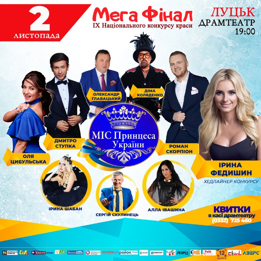 2 листопада о 19:00 у Волинському драмтеатрі відбудеться дев'ятий національний конкурс краси "Міс принцеса України 2018".