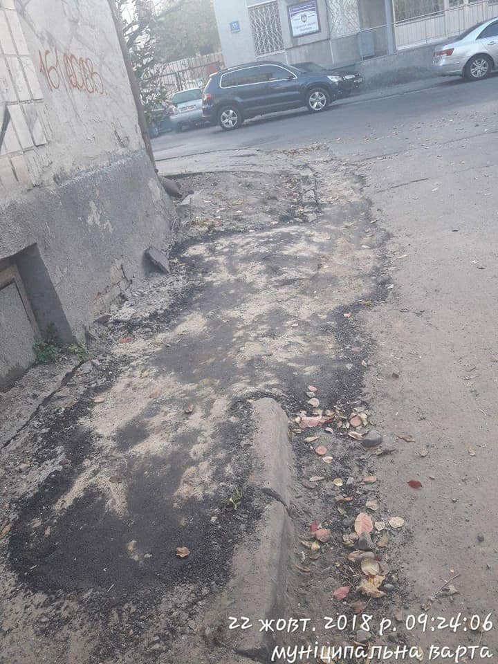 Енергетики за вказаною адресою проводили аварійні роботи та залишили після себе неякісно заасфальтовану частину тротуару", - пишуть муніципали.