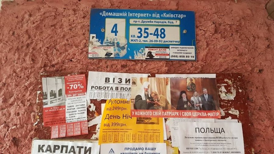 У Луцьку напередодні приїзду предстоятеля УПЦ МП Онуфрія розклеїли листівки.