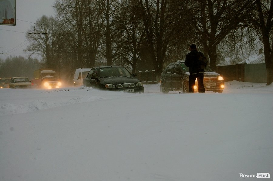 В останню годину світлої пори п ятниці 15 березня фотокор ВолиньPost побував на вулиці Львівській. Глобального "снігового колапсу" помітно не було, проте, як і всюди, видно було людей по коліно в снігу та транспорт, що застряг у наметах.