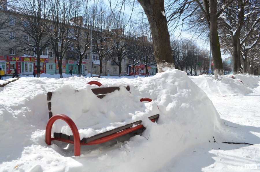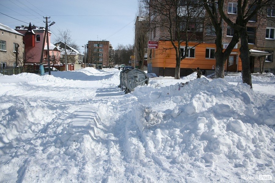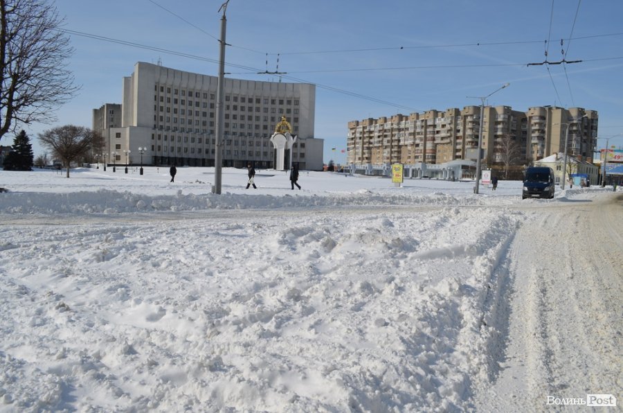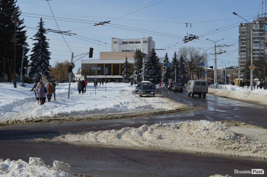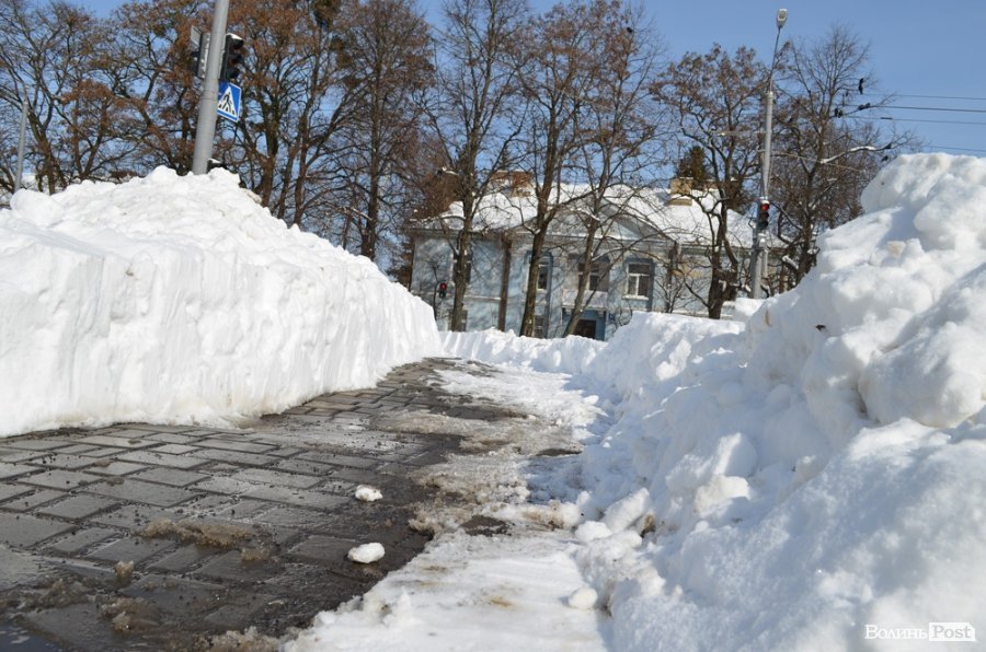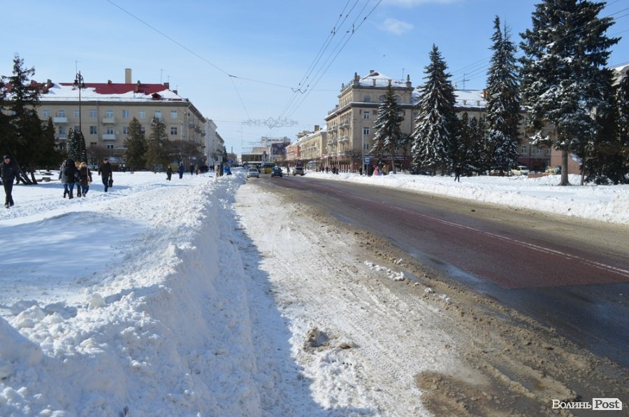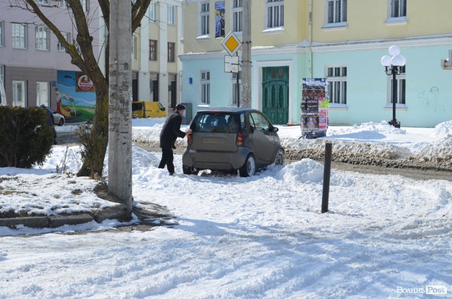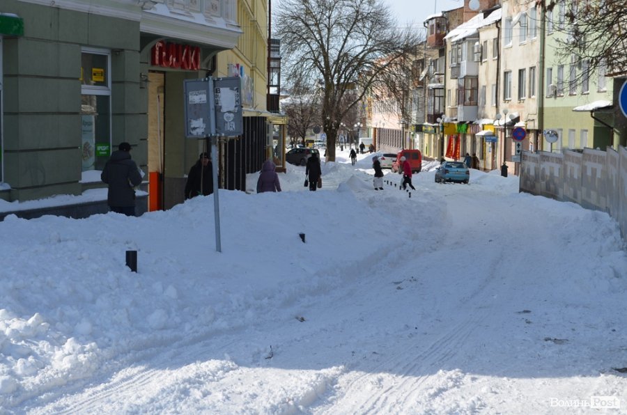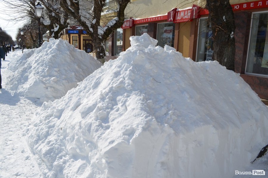 Луцьк відчищається від снігу, який рясно посипав місто майже добу: від вечора 14 березня до вечора 15 березня. За цей час випала місячна норма опадів.