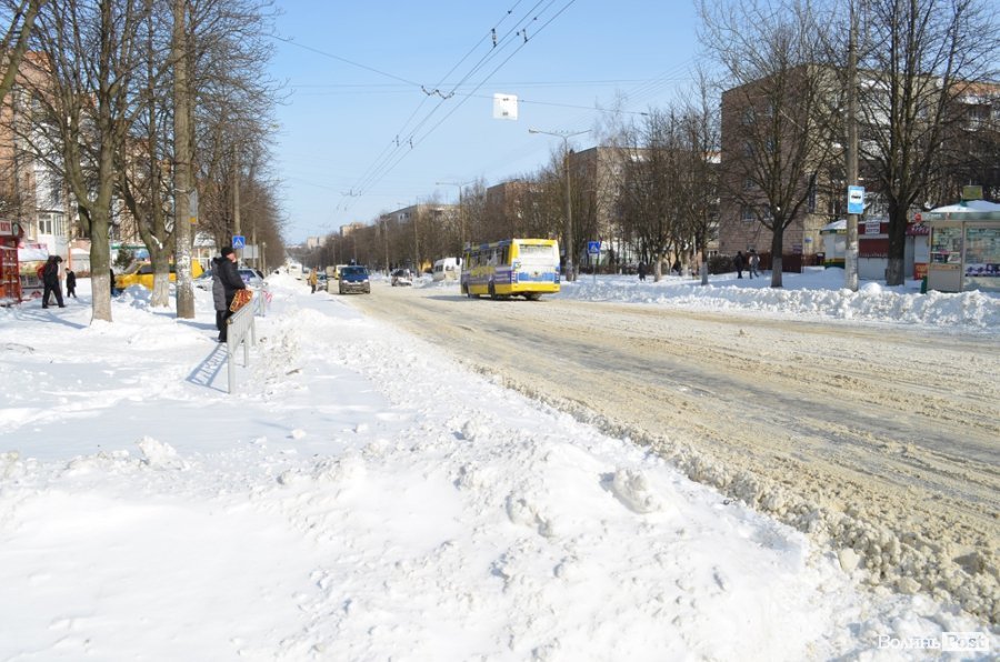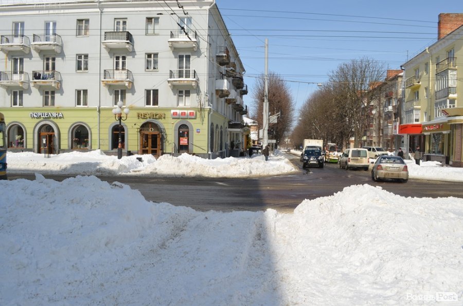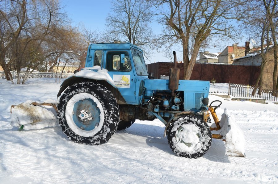 Техніки та працівників житлово-комунальних підприємств на вулицях не дуже багато. Навіть на Театральний майдан поки не відчищений від снігу.