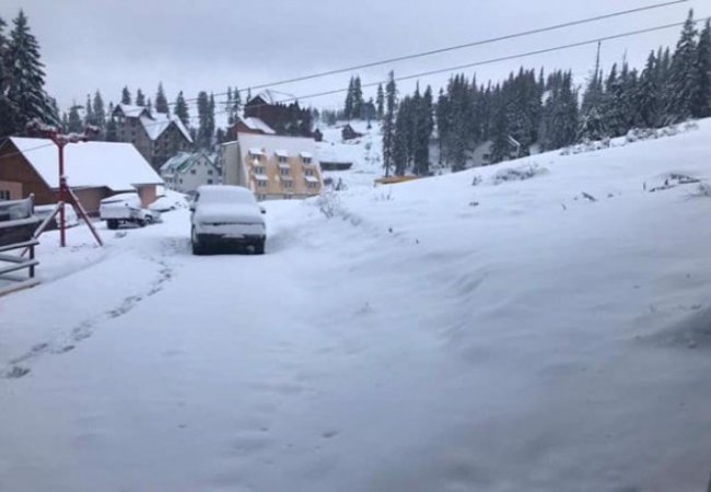 Високогір'я Карпат у межах Закарпатської області засипає мокрим снігом, до ночі він може посилитися до снігу, а температура знизиться до 5 градусів нижче нуля.