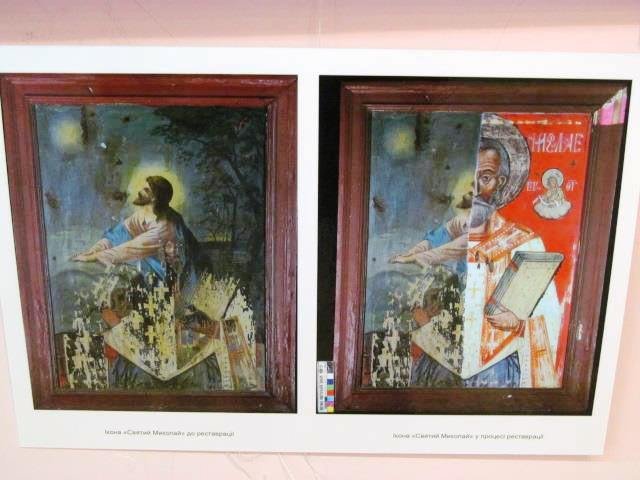 На виставці також представлені фото , де зображені пам’ятки іконопису, якими вони були тоді, коли їх привезли до музею, світлини, зроблені у період, коли їх реставрували, а також кінцевий варіант – оновлені ікони.