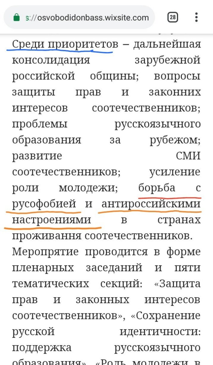 Зі слів блогера, 1 листопада в Москві відбудеться так званий «VI Всесвітній конгрес російських співвітчизників, які проживають за кордоном». У програмі вказано, що під час заходу «росіяни з України будуть відстоювати свої права на форумі в Москві».