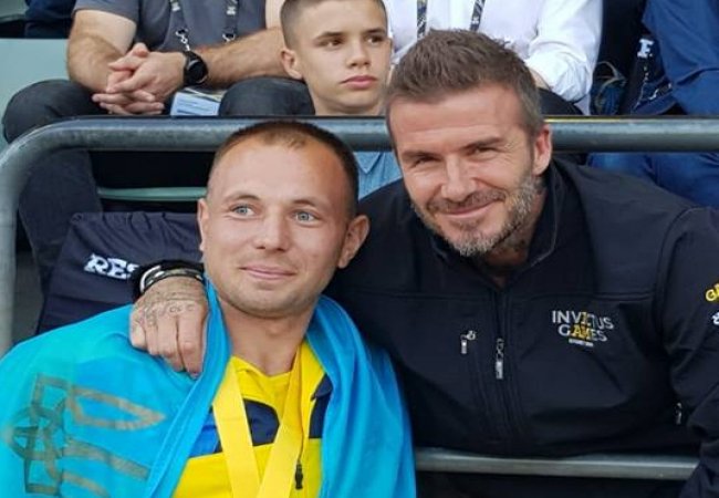 Девід Бекхем, який є амбасадором "Ігор Нескорених", сфотографувався із володарем срібної медалі українцем Василем Омельченком, який виступає у дисципліні легка атлетика, - повідомили у спільноті Invictus Games: Team Ukraine.
