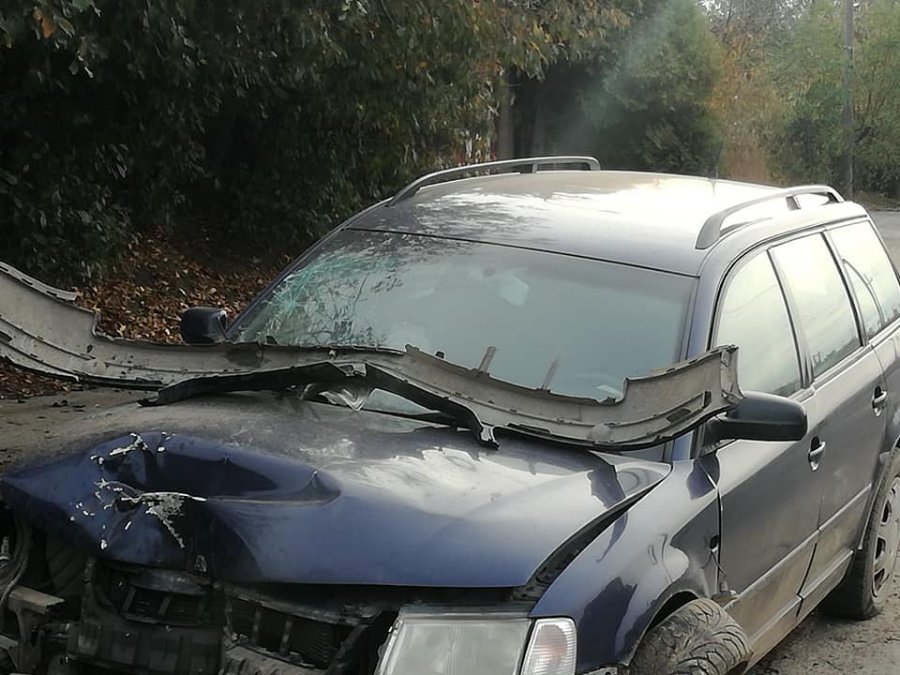 Карпенка-Карого, схоже налетів на розділові смугу, втратив керування і долетів аж до виїзду з приватного подвір'я.
