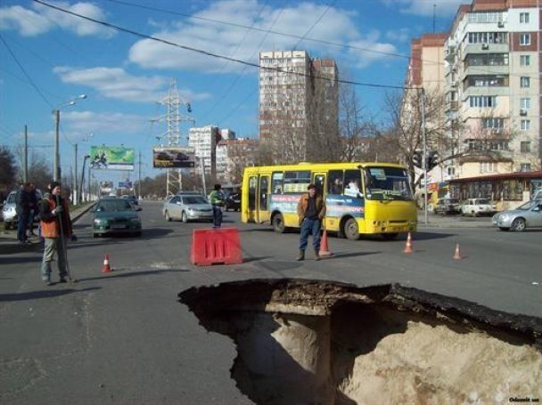 В Одесі посеред дороги утворилася 6-метрова яма. ФОТО