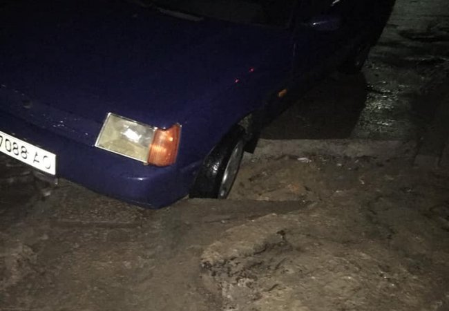 За словами очевидців, ввечері, 27 жовтня, на вулиці Кравчука, навпроти магазину "Формула", автомобіль KIA злетів в яму, яку комунальники залишили після заміни мереж.