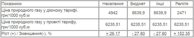Відтак, на теплову енергію для населення ріст становитиме 22,2%, для релігійних організацій - 76,4%. Поряд з тим, тариф на теплову енергію для бюджетних установ для інших споживачів (крім населення) зменшиться на 11,1 %.