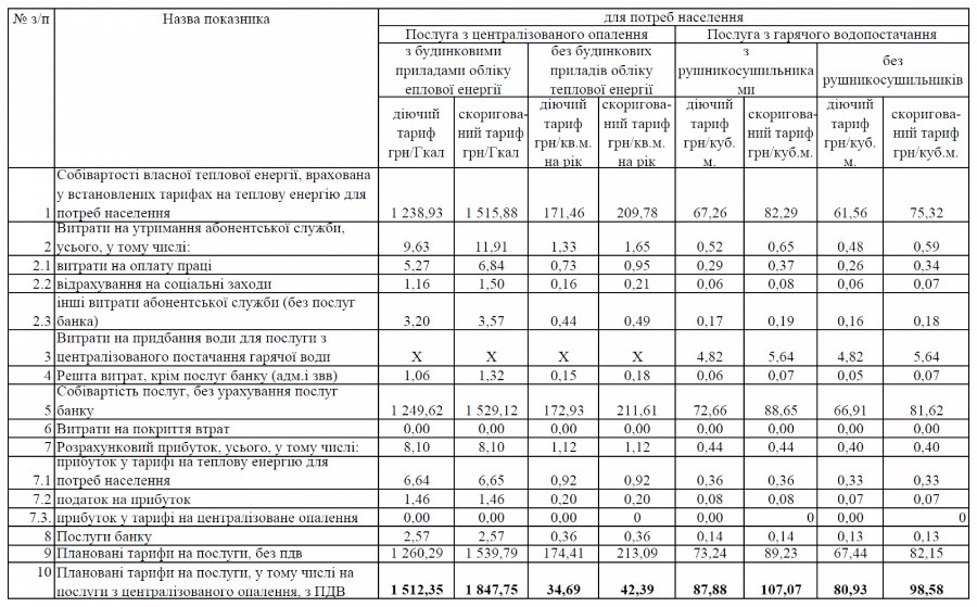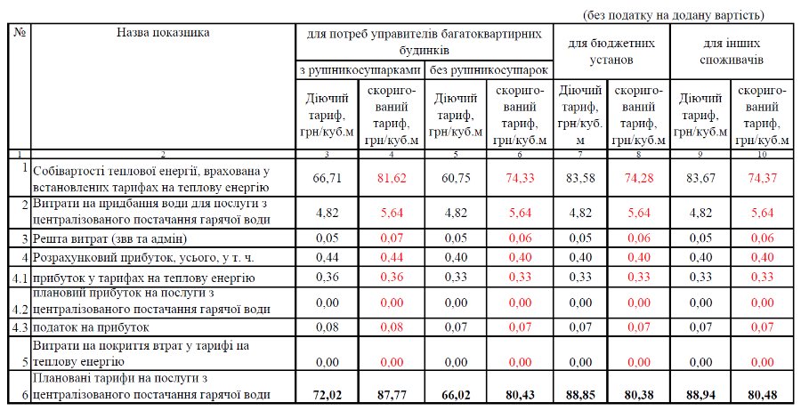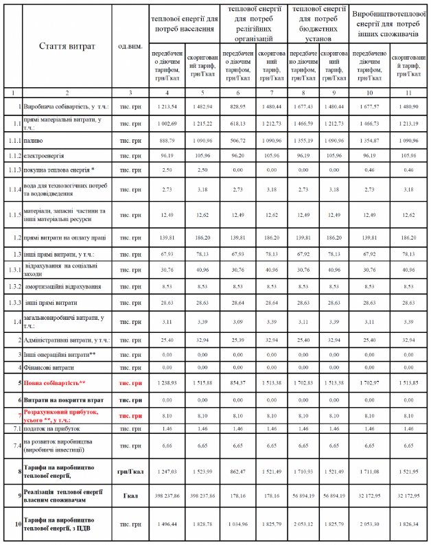 Перерахунок тарифів проводився коригуванням лише тих складових частин структури тарифів, за якими відбулись цінові зміни.