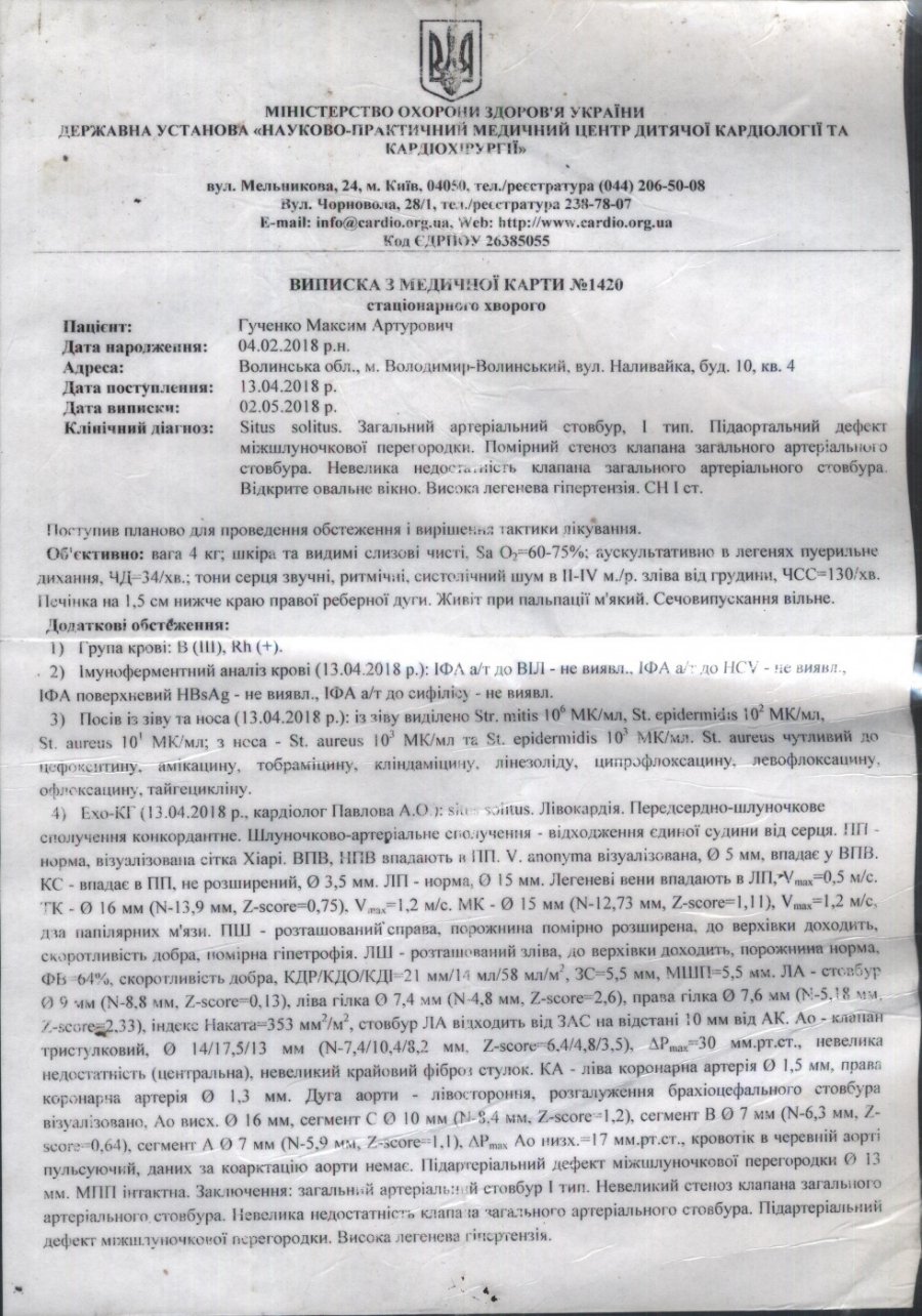 У квітні хлопчик переніс першу операцію, яку зробили у киїському Охматдиті. Її провели безкоштовно, а на лікування батьки витратили близько 95 тисяч гривень. Зараз Максимко потребує реабілітації, яка обійдеться у більше ніж 10 тисяч гривень, а у рік потрібно зробити ще одне хірургічне втручання – замінити клапан на серці.