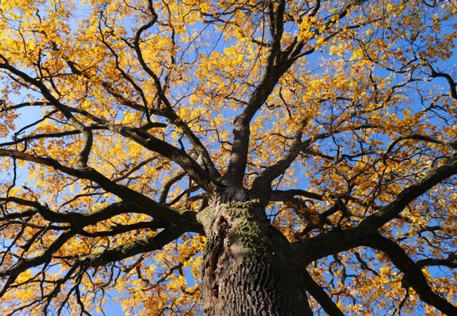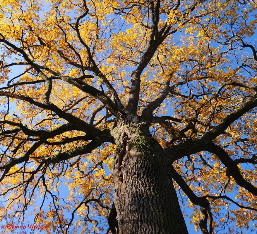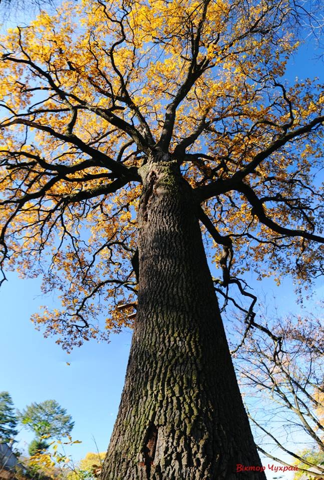 У мережі з'явилися осінні світлини дубів, що ростуть у Боголюбах, що біля Луцька.