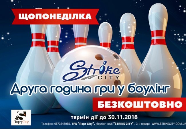 Щопонеділка, весь листопад, у «Strike City» платите за одну годину гри у боулінг – граєте дві.