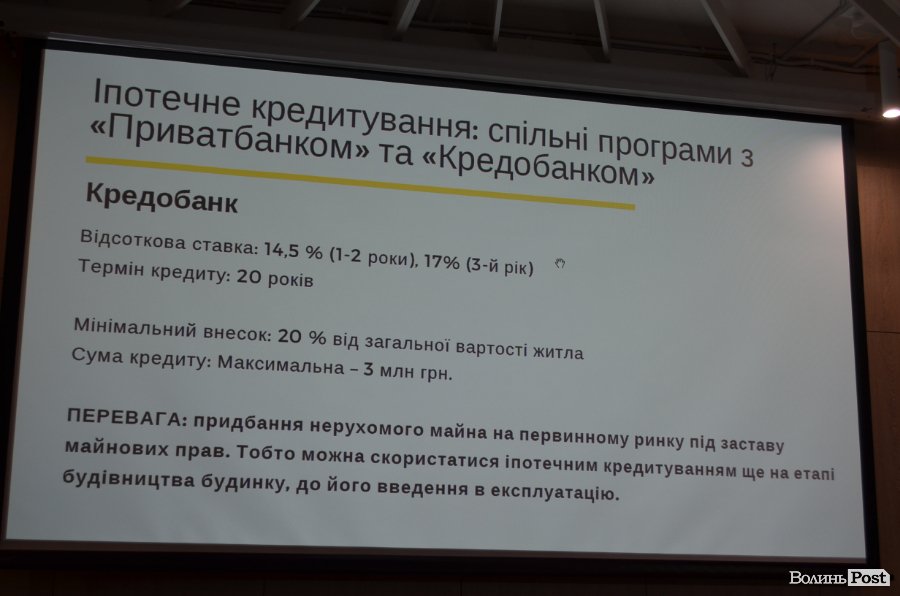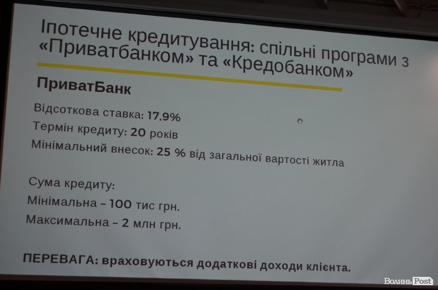 «Хочемо наголосити, що цих програм боятися не варто. Наразі ми працюємо з двома банками – «ПриватБанк» та «Кредобанк», обидва вони надійні. Банки пропонують трішки різні умови іпотечного кредитування. І кожен з них має свої переваги», – розповіла Ірина Новосад.
