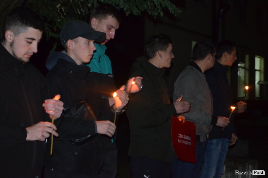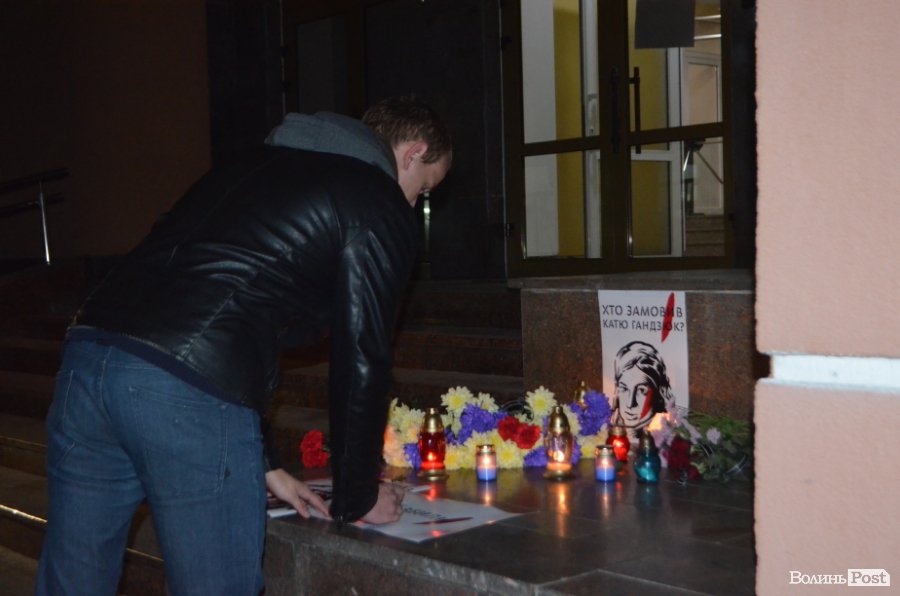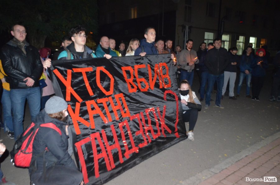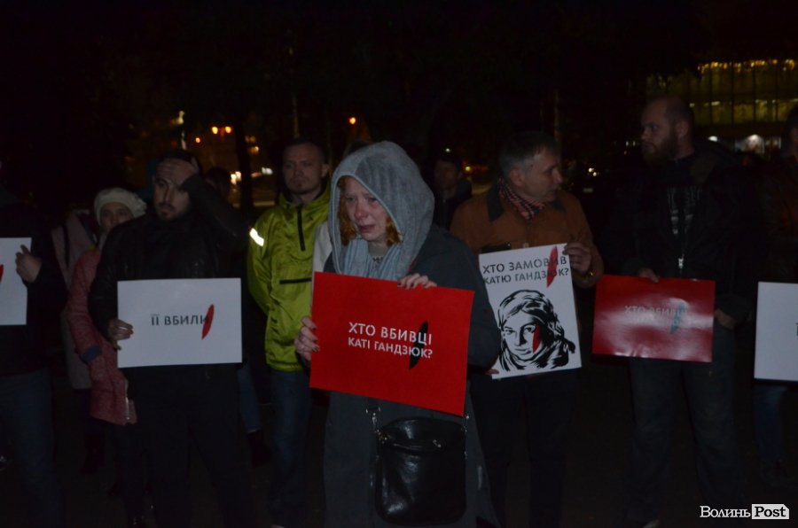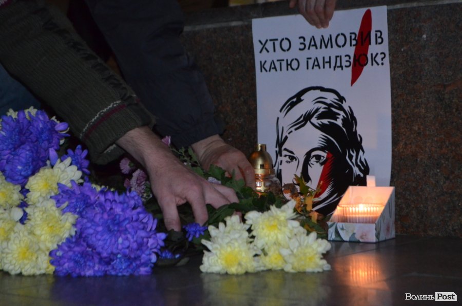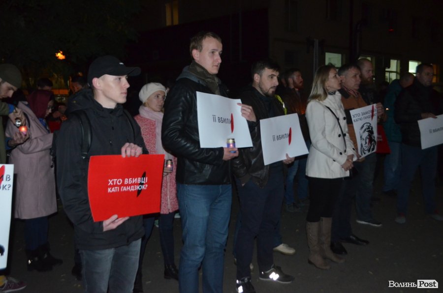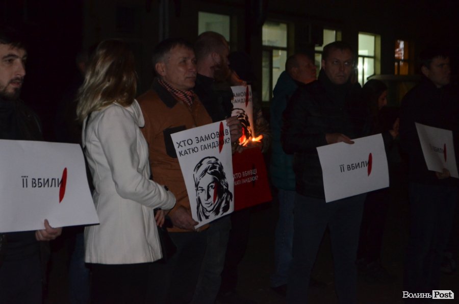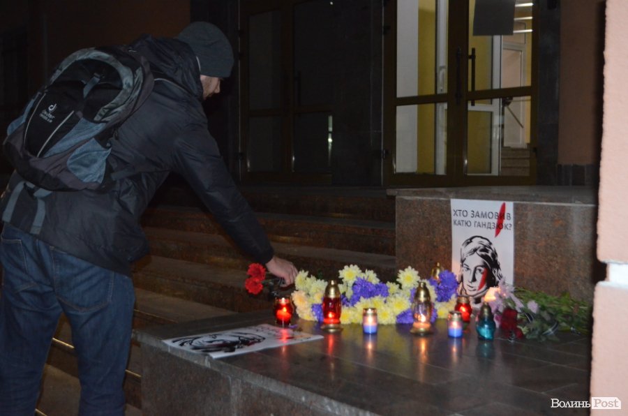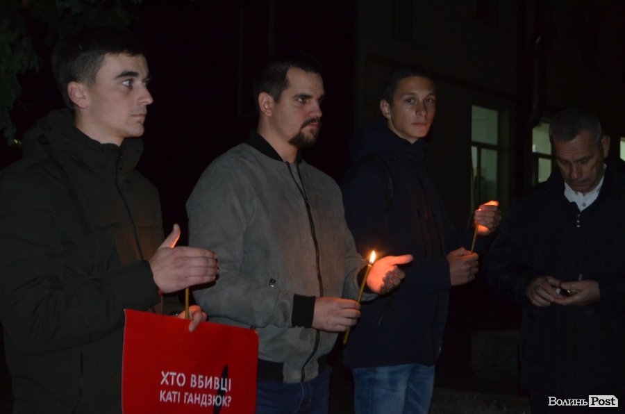 З плакатами «Її вбили», «Хто замовив Катю Гандзюк», свічками та лампадками присутні вшанували пам'ять активістки. А також нагадали, що поліція і досі не знайшла людей, які замовиляли напади на активістів по всій Україні.