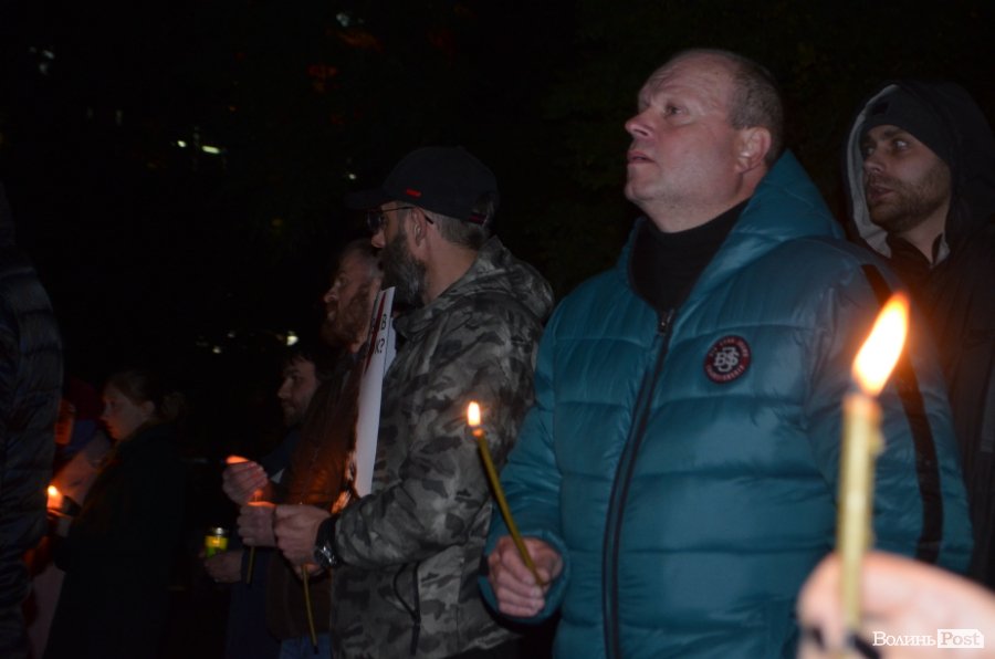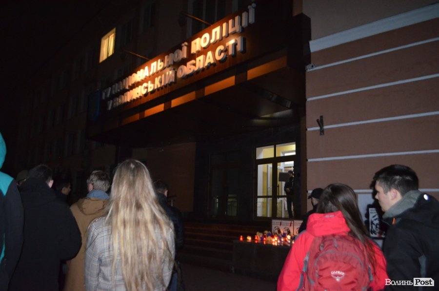 Акція відбулася у неділю, 4 листопада, біля головного управління Національної поліції у Волинській області.