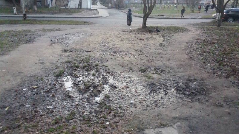 "Ще у 2017 році проводився ремонт комунікацій поблизу буд. на вул. Кравчука 9. Внаслідок цього було зруйновано пішохідну доріжку, яка веде від будинку в бік паспортного столу. Прохання відновити її", - пише чоловік.