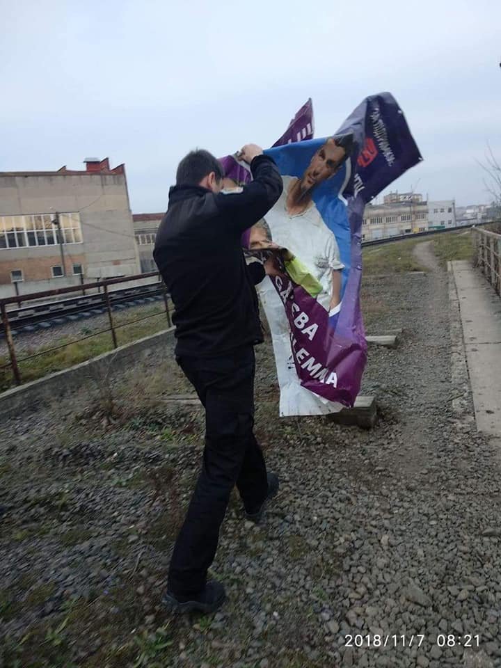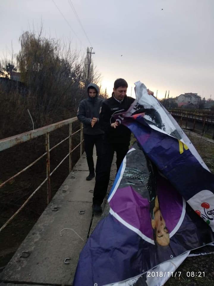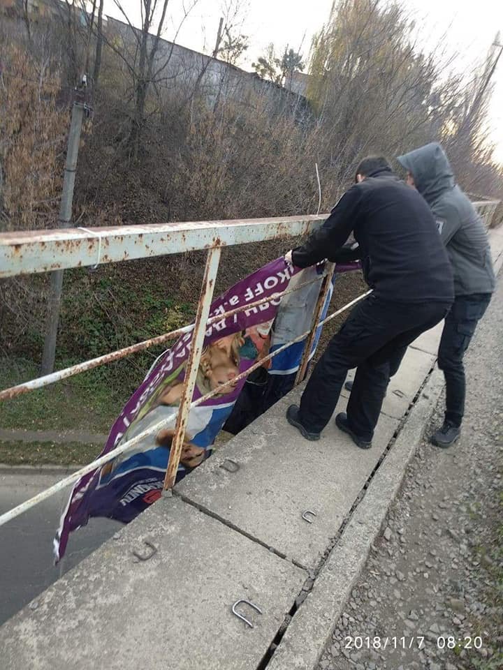 Інспектуючи вулиці обласного центру Волині, вранці сьогодні, 7 листопада, муніципали побачили, що на залізничному мості на вулиці Карпенка-Карого майорить обірваний рекламно-інформаційний плакат, що може впасти та спричинити ДТП.