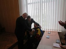 Голова райради Михайло Макарук привітав Марину з цим почесним званням та вручив нагрудний знак.