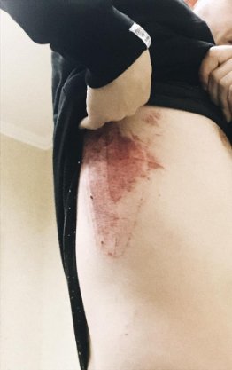 «Дякую, Луцьк! Це було легендарно. Ну і так... вперше сцена під моїми ногами підступно зламалася. Всіх ще раз обійняв! Тернопіль, ви наступні!» - написав Мартинюк у соцмережі і поділився світлиною із травмованим боком.