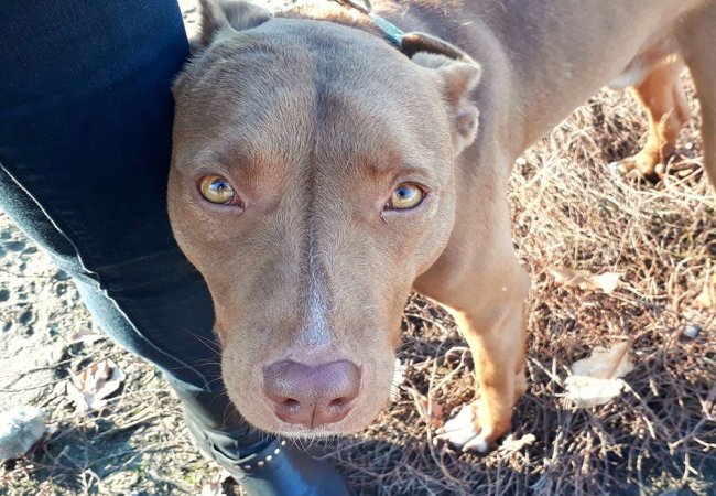 «Неймовірний пес. У нього незвично яскраво жовті очі. Він не такий як всі. Стаф із характером кота. Ми ніколи не чули його гавкоту. Його зрадив господар, віддавши нам - він 2 місяці майде не виходив з будки, лише інколи скулив - це був його крик відчаю», - йдеться в дописі.