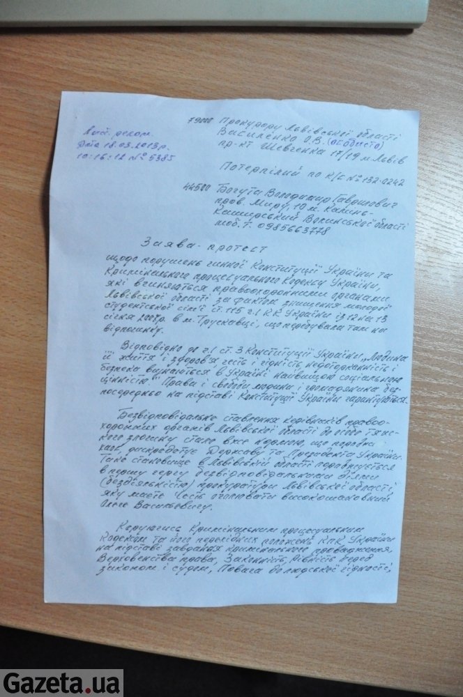 «Мене намагались у психлікарню замкнути, ніби я хворий, але психіатр сказав, що я повністю дієздатний і нормальний. Намагалися зробити мене терористом і звинувачували у замінуванні суду. Я вже просто втомився. І якщо прокуратура не втрутиться у цю справу, то я буду змушений на радикальні кроки ‒ я знищу себе у центрі Львова біля памʼятника Тарасові Шевченку», ‒ резюмував він.