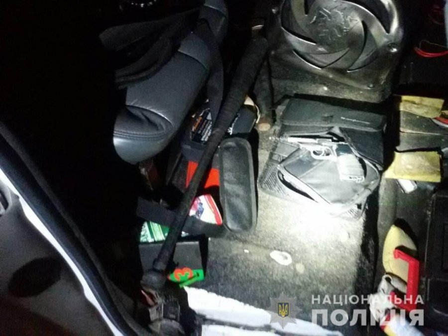 Слідчо-оперативна група на місці події вилучила із салону авто стартовий пістолет «Atmaca» із ознаками переробки та дерев’яну биту, обмотану резиною.