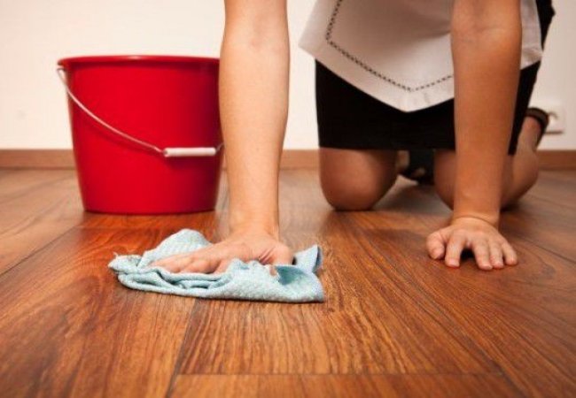 • Вода. Щоб очистити брудну підлогу, вам потрібна вода. Проблема з ламінованою підлогою полягає в тому, що при занадто великій кількості рідини вона проникає в стики між панелями. Для більшості приміщень зазвичай досить прибирання за допомогою пилососа або віника. Вологою ганчіркою можна протерти окремі забруднені ділянки.