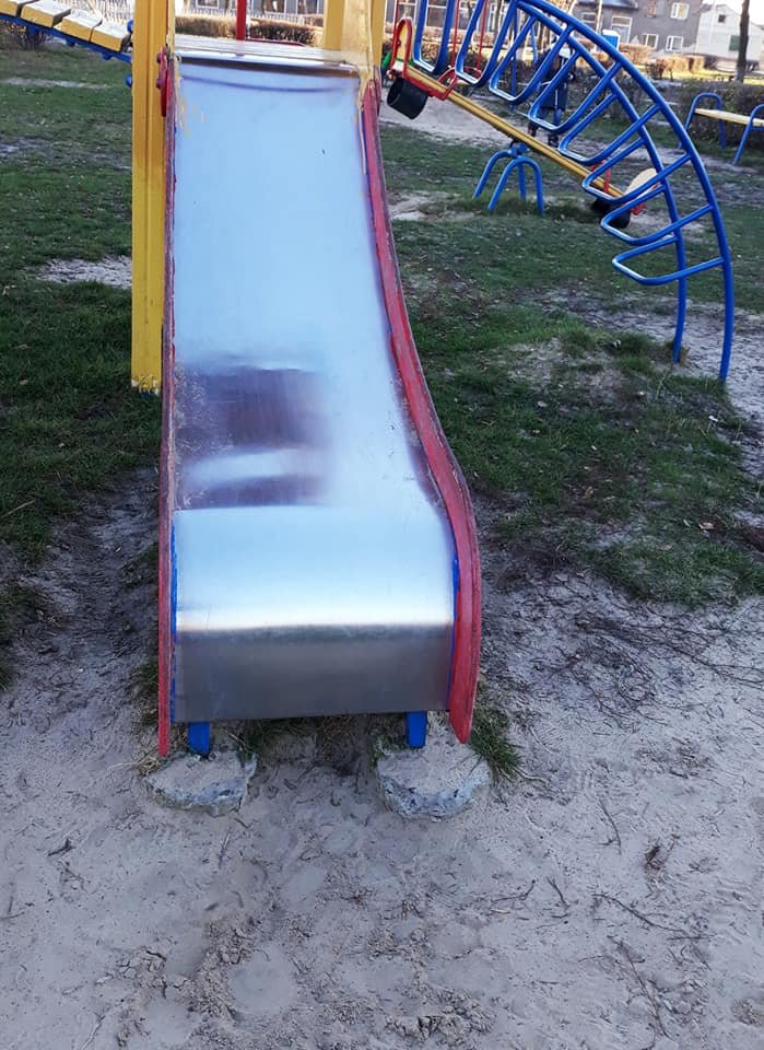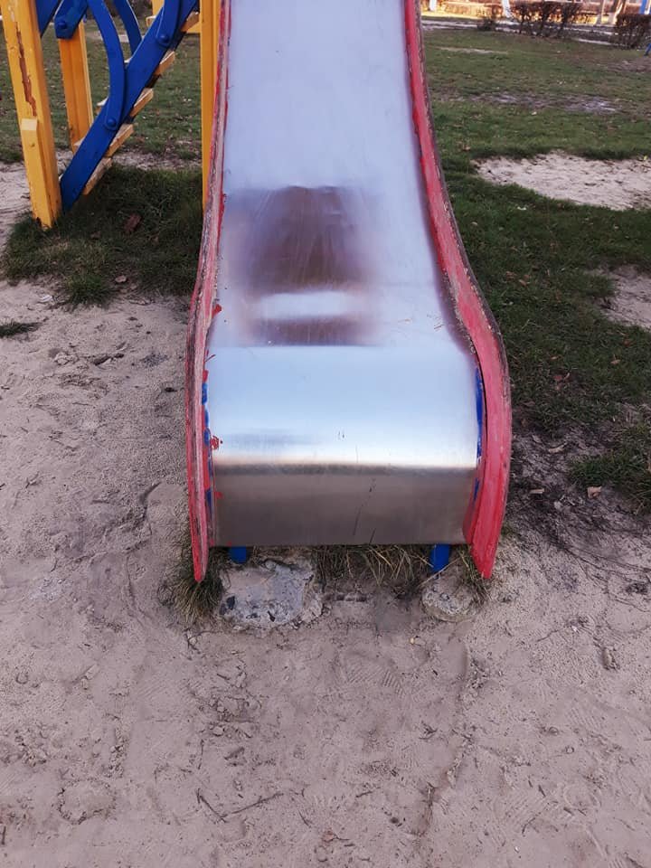«Будьте обережні, коли ваші діти спускаються з цих гірок... На жаль сьогодні гуляючи з дитиною на цьому дитячому майданчику спостерігала дуже прикру ситуацію.