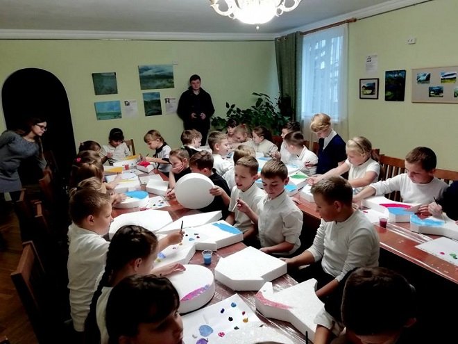 Учні Ківерцівської експериментальної школи у краєзнавчому музеї виготовляли ялинкові прикраси.