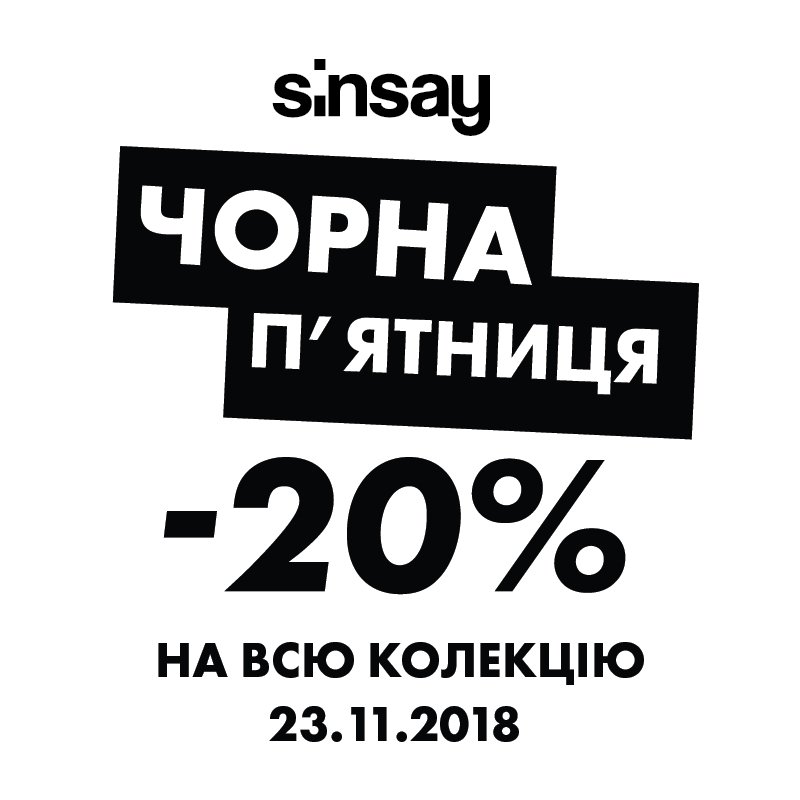 23 листопада -20% на весь асортимент товару, 24 та 25 листопада -20% на вибрані групи товарів.