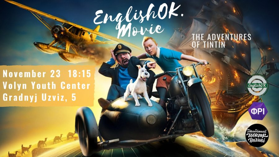 23 листопада о 18:00 у Молодіжному центрі Волині (вул. Градний Узвіз 5) відбудеться перегляд мультфільму "Пригоди Тінтіна: Таємниця єдинорга" англійською мовою із субтитрами.