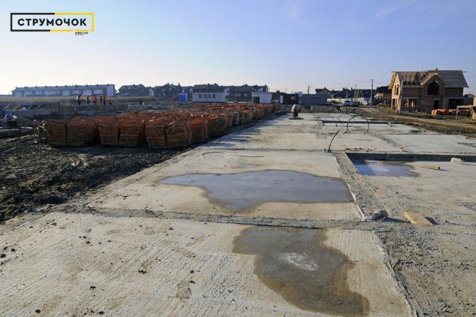 Станом на 20 листопада будівельники завершують зведення шести перших котеджів, зокрема, два з них домурували та взялися за покрівлю. Решта в процесі мурування.