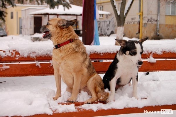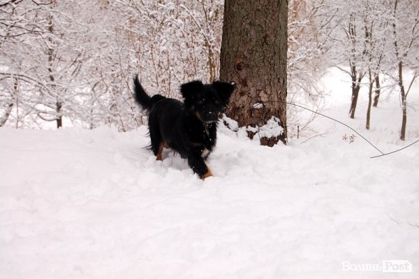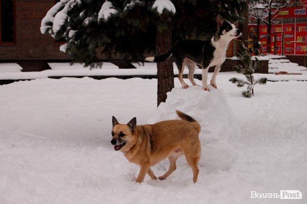Суботній сніг у Луцьку сподобався навіть собакам - песики, як і діти, грали у свої ігри.