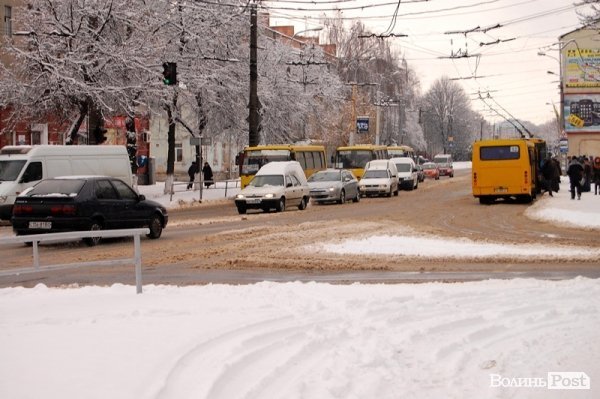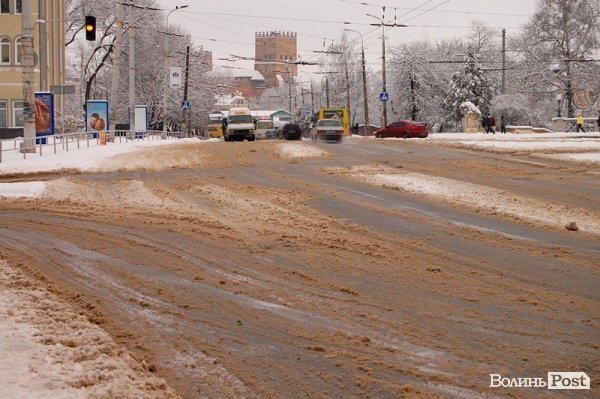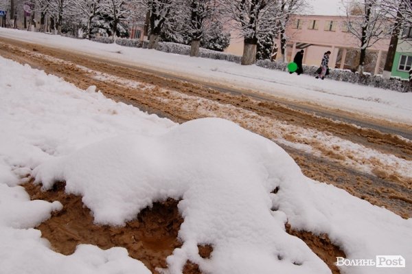 Втім ближче до обіду комунальники, транспорт і плюсова температура «порозганяли» сніг. Опісля обіду на дорогах утворились калюжі.