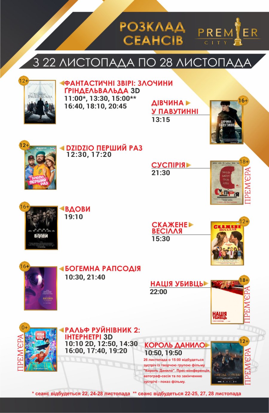 У кінотеатрі «Premier City» покажуть чотири прем'єрних кінострічки*
