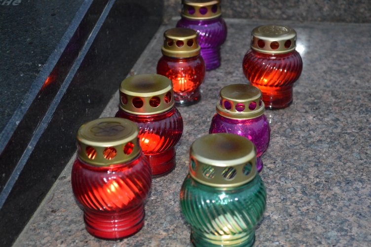 Учасники мітингу поклали квіти та поставили лампадки до підніжжя меморіальної стели.